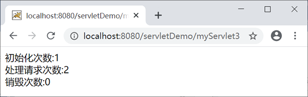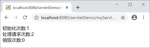 在地址栏中输入“http://localhost:8080/servletDemo/myServlet2”,也可以访问 MyServlet,结果如下图。