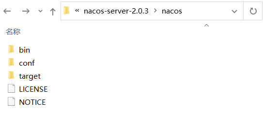 2. 下载完成后,解压 nacos-server-2.0.3.zip,目录结构如下。